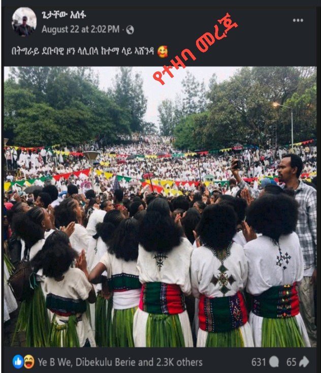 ጹሁፉ በፈረንጆቹ ነሐሴ 22፤ 2025 ዓ.ም ነው የተለቀቀው፡፡ በዚህ ልጥፍ ላይም ‹‹የአሸንዳ በዓል በትግራይ ደቡባዊ ዞን ላሊበላ ከተማ እየተከበረ ነው›› በሚል ለቀልድ በሚመስል መልኩ የተሳሳተ መረጃን አሰራጭቷል። ሆኖም ይህ ፖስት ከላይ እንደተጠቀሰው ሳይሆን ትክክለኛ መረጃውና ዜናው ትክክለኛ በፋና ሚዲያ ኮርፖሬሽን ላይ ይገኛል። በዚህ ዘገባ ላይም ‹‹ በአማራ ክልል የተለያዩ አከባቢዎች ሻደይ፣ አሸንድዬና ሶለል በዓል በድምቀት እየተከበረ ነው ›› በሚል ተዘግቧል፡፡ ይህም በዚህ ሀሰተኛ ገጽ ‹‹በትግራይ ደቡባዊ ዞን ላሊበላ ከተማ›› የሚል ትክክል ያልሆነ ቦታን ተጠቅሟል፡፡ ይህ ልጥፍ ከ2.3 ሺ በላይ የተለያዩ ሪአክሽኖች፤ ከ600 በላይ አስተያየትና ከ65 በላይ ሼር አግኝቷል፡፡