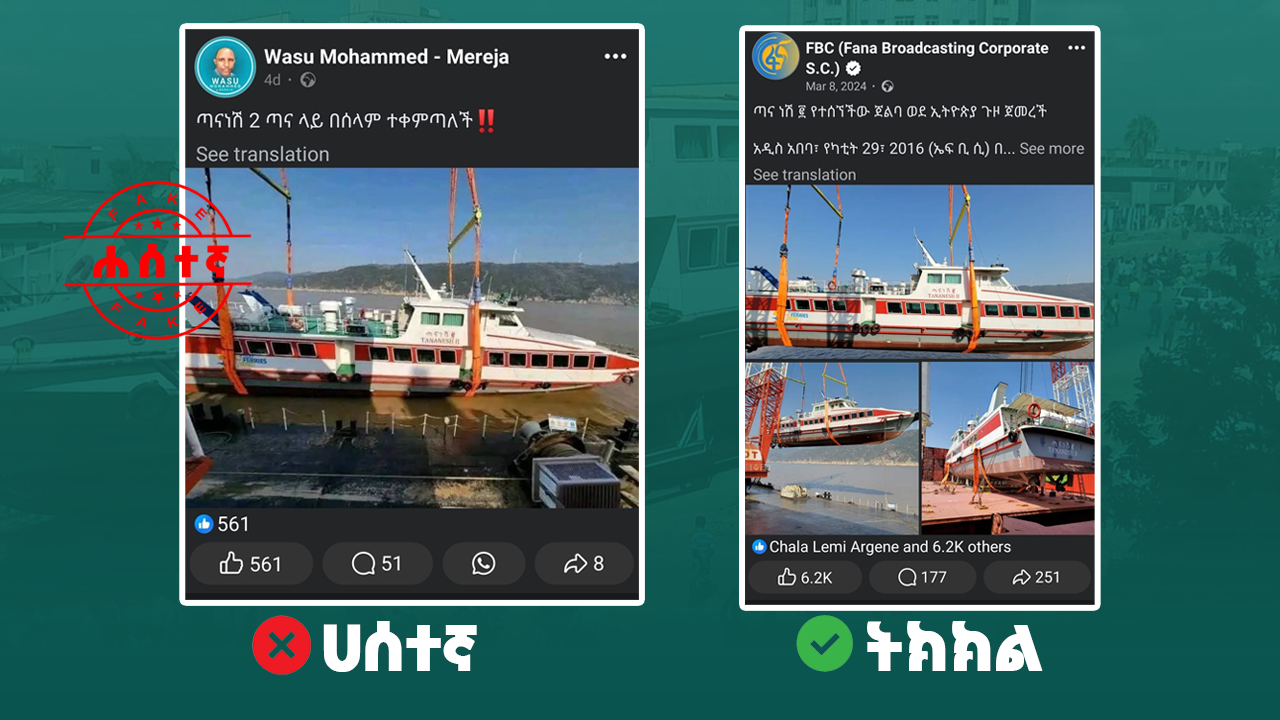 መነሻዋ ከቻይና የሆነውና ላለፉት ወራት ከጅቡቲ ተነስታ ባህርዳር የገባችው "ጣናነሽ 2" ጀልባ በማኅበራዊ ሚዲያው ከፍተኛ መነጋገሪያ ሆኖ የቆየ ርዕሰ ጉዳይ ነበር። ይህን የተመለከቱ የተለያዩ ሀሰተኛ ዘገባዎችም ተሰራጭተዋል። በዚህ ሪፖርት የተወሰኑትን እናነሳለን።