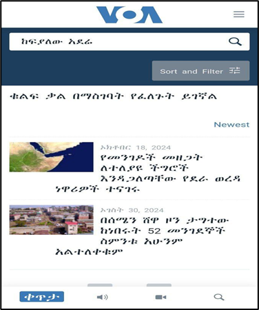 በዚህ ቻናል መረጃ ፋኖ በኦሮሚያ ክልል ሰሜን ሽዋ ዞን 3 ወረዳዎችን ተቆጣጠረ በሚል የተገለጸ ሲሆን የኦሮሞ ነጻነት ሰራዊት ደግሞ አምስት ወረዳዎችን መቆጣጠሩን በዘገባው አመላክተዋል።በዚህ ዘገባ ሁለቱ ሃይሎች ተቆጣጠሯቸው የተባሉት ወረዳዎች በስም አለመጠቀሳቸው የዘገባውን ተዓማኒነት የሚቀንስና በዘገባው ላይ ጥርጣሬን የሚያስነሳ ነው።በዘገባው የኦሮሚያ ክልል ሰሜን ሽዋ ዞን ዋና አስተዳዳሪ ስለ ሁኔታው ለቪኦኤ(VOA) ና ለዶቼቬሌ(DW) ተናገሩ ተብሎ የድምጻቸው ቅጂ ሳይያያዝ በዋቢነትም ተጠቅሰዋል።ይሁን እንጂ የዞኑ አሰተዳዳሪ በተባለው ጊዜ ወይም ዘገባው በተሠራበት ወቅት ለሁለቱ የዜና ተቋማት የሠጡት ቃለ ምልልስ አለመኖሩን ከዜና ተቋማቱ ክምችት (archive) ማረጋገጥ ተችሏል።