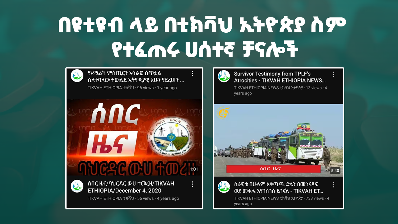ልክ እንደ ፌስቡክ ሁሉ ቲክቫህ ኢትዮጵያ ምንም ዓይነት የዩቲብ ቻናል እንደሌለው ገልጧል፡፡ እነዚህ ሀሰተኛ ገጾች በስፋት መረጃችን በዩቲዩብ ሲያጋሩ የነበረው በግጭት ወቅቶች ጊዜ እና ወቅት ጠብቀው በርካታ ሰዎች ሊመለከቷቸው የሚችሉ ርዕሰ ጉዳዮች ሲነሱ እንደሆነ ካየናቸው ሀሰተኛ ገጾች መረዳት ችለናል፡፡