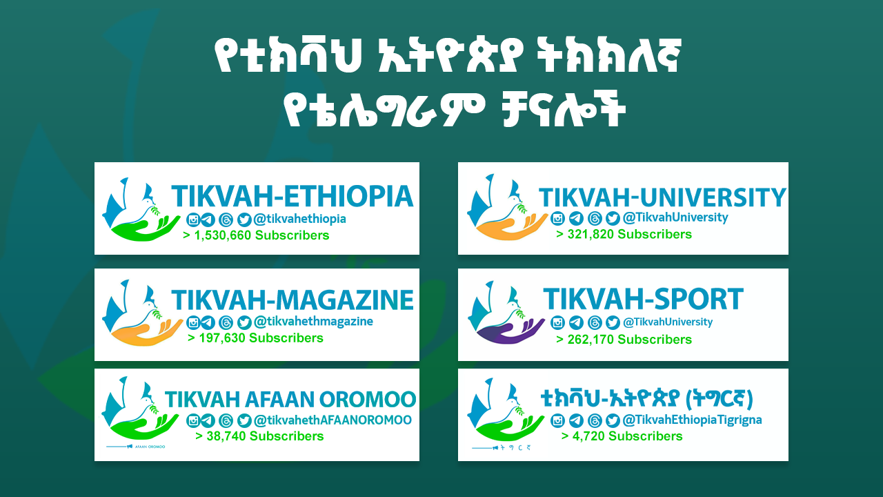 ከላይ በምስል በተቀመጠው መሰረት ቲክቫህ ተከታዮቹ ገጾች አሉት በተጨማሪም የቲክቫን ትክክለኛ ገጾች ለመረዳት ከ1.5 ሚሊዮን በላይ ተከታይ ባለው የቴሌግራም ቻናል ላይ ባለው መግለጫ ዋናውን ቻናል እና በስሩ የሚያስተዳድራቸውን 5 የቴሌግራም አካውንቶች ያስቀምጣል፡፡ በእሱ ማረጋገጥና የቲክቫህን ዜናዎች በቀጥታ በእነዚህ ቻናሎች መከታተል ይመከራል፡፡